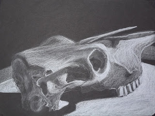 Charcoal skull, black paper... you know... good times, oh wait no this is colored pencil... my bad.